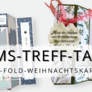 Zum Glück wurde ich bei meiner ersten Karte von den Teilnehmern zu der Farbkombination OLIVGRÜN und WALDMOOS überzeugt. Diese passen wunderbar zum Designerpapier mit den Goldakzenten. Sieht doch absolut edel aus, oder? Die Karte funktioniert natürlich auch im Querformat. Also immer schön abwandeln 😉
