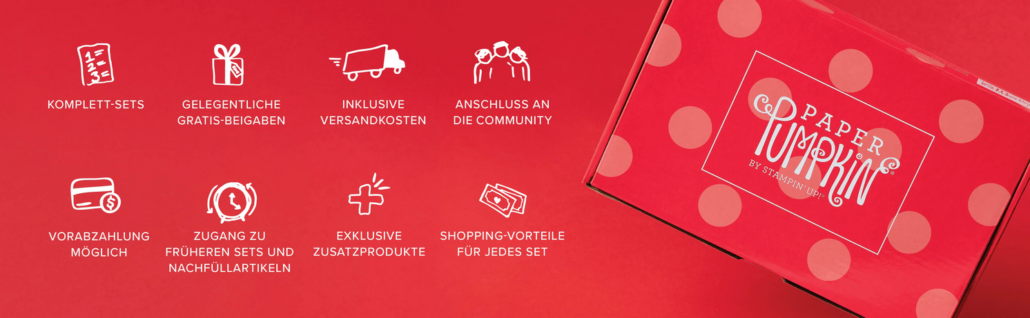 • Der direkte Weg: Nutze gleich hier den Link zu deinem Paper Pumpkin Abo, so bin ich direkt als deine Ansprechpartnerin hinterlegt und ich helfe dir bei deinen Fragen – ZUSÄTZLICHES EXTRA du bekommst eine exklusive Einladung zum Kreativ-Club-PP mit monatlichem Online-Live-Event.