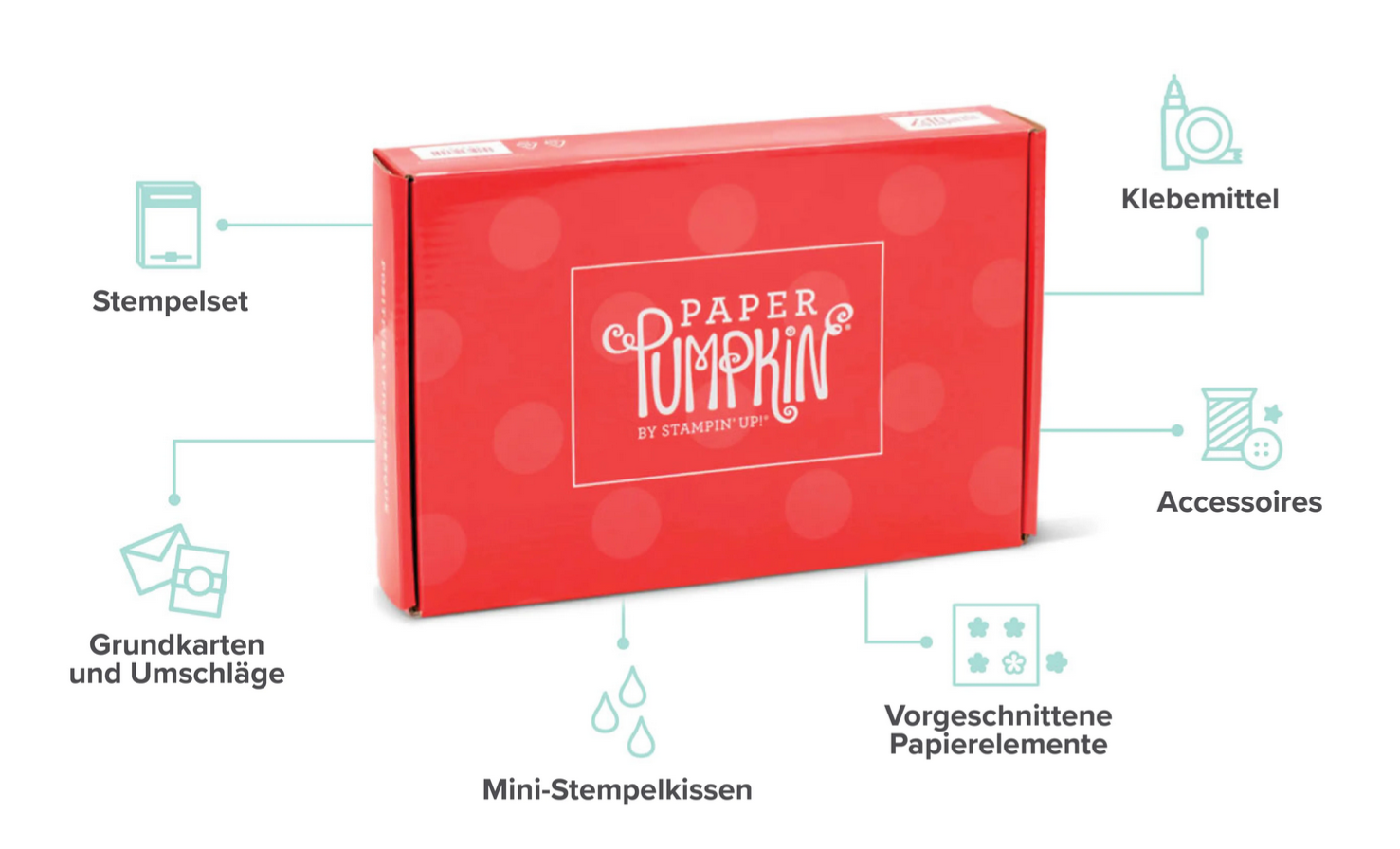 Dabei handelt es sich um ein Abonnement-Programm von Stampin’ Up! – und ein Komplettpaket für kreative Erfolge! Stelle dir vor, du könntest all das, was du am kreativen Gestalten mit Papier so wertschätzt, in einer Schachtel Monat für Monat nach Hause geliefert bekommen. Was genau darin ist, wird vorher nicht verraten – ÜBERRASCHUNG! Kleiner Hinweis am Rande: eine kleine Vorschau gibt es schon 😉 – zumindestens die Richtung um was es geht! Näheres dazu findest du weiter unten. Wichtig zu wissen, derzeit ist Paper Pumpkin nur in Englisch erhältlich. Du kannst das Abo ganz flexibel monatlich, oder als festes 3  /  6 oder 12 Monate  Abonnement abschließen.