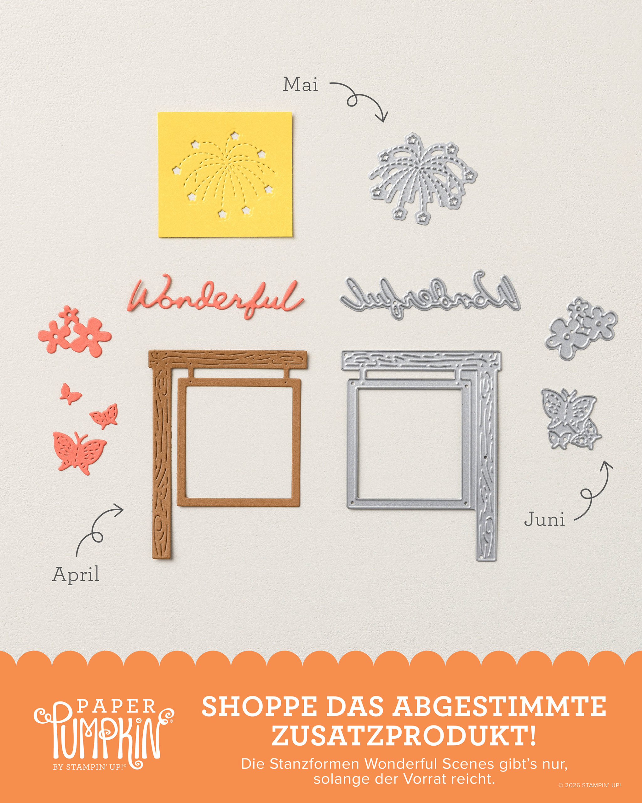Das Besondere daran: Ab April 2026 bekommen wir Abonneten weltweit – zur gleichen Zeit – dieses fantastische, perfekt abgestimmte Kreativset. D.h. also überall auf der Welt machen Bastelbegeisterte die gleiche Box auf, benutzen die gleichen exklusiven Stempel und gestalten gemeinsam.
